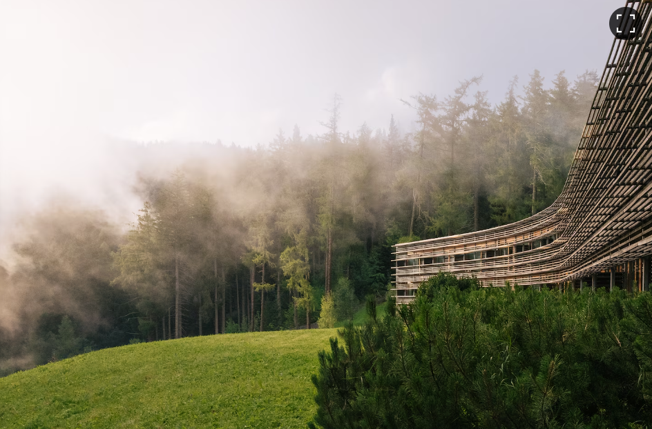 Ở dãy Dolomites, cáp treo gắn liền với mùa du lịch, nhưng đó cũng là cách duy nhất để đến Vigilius Mountain Resort — khách sạn nằm trên đồng cỏ núi cao gần 1.500m. Từ đây, bạn có thể nhìn thấy núi đá vôi, rừng thông và dòng sông Adige. Khách sạn được thiết kế tối giản, gỗ sáng màu và nhà hàng phục vụ ẩm thực Nam Tyrol tinh tế. Các hoạt động gồm yoga, bắn cung, spa, nhưng ấn tượng nhất vẫn là chuyến cáp treo đưa bạn lướt lên trời như chim đại bàng.