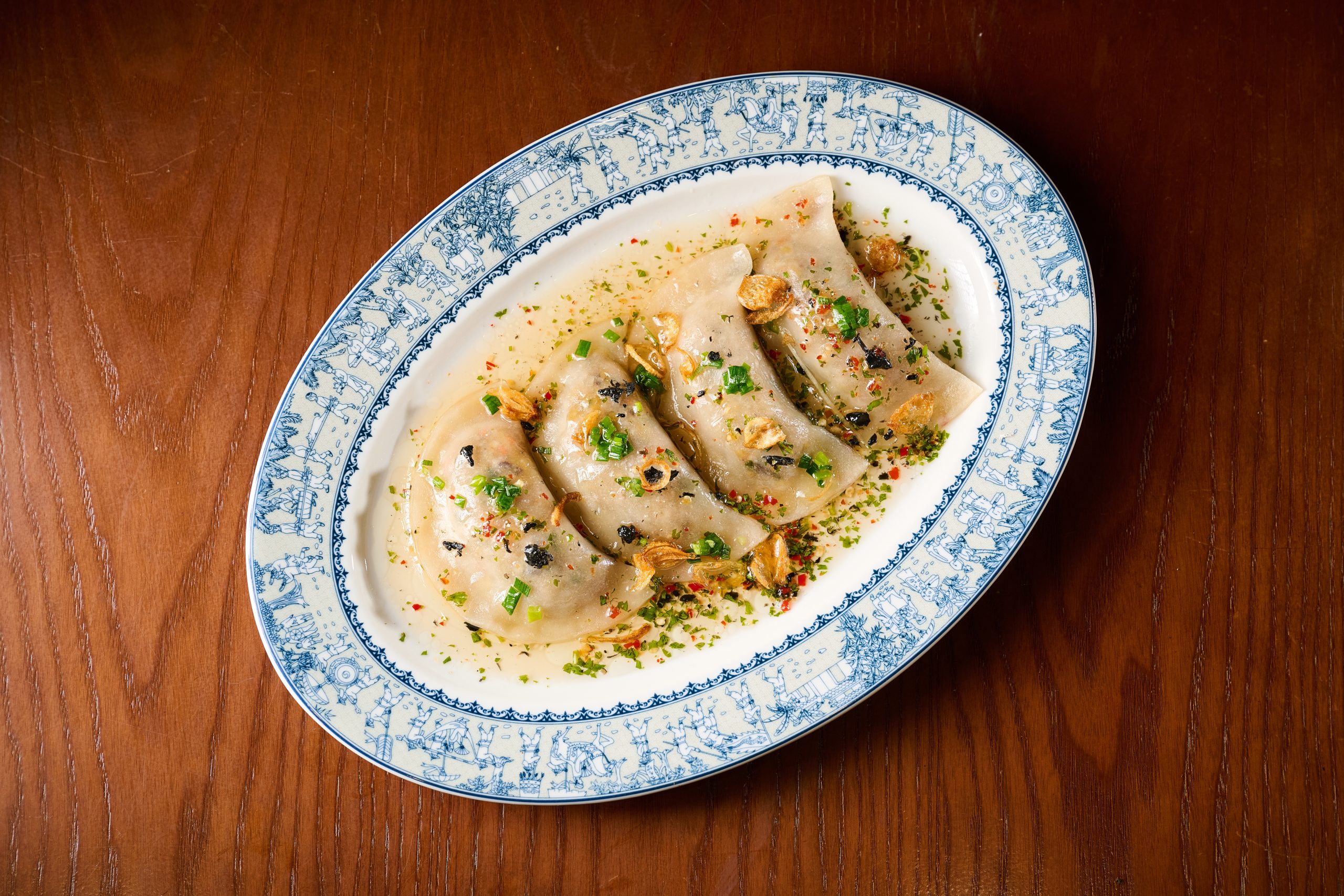 Món Bánh quai vạc xốt nấm Truffle sẽ mê hoặc với sự mềm mịn của vỏ bánh hài hòa cùng nhân bánh từ thịt ba chỉ trắng, đậu xanh được quyện trong hương nấm Truffle thật tuyệt hảo.