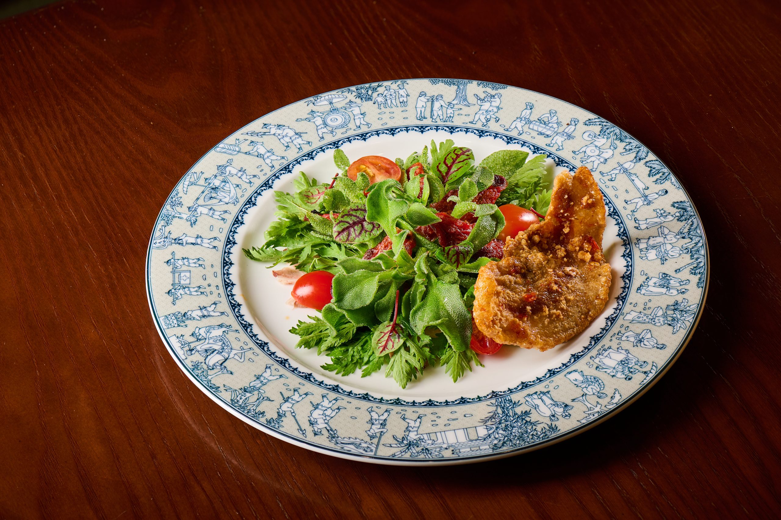 Món khai vị Salad thăn heo với thịt thăn, ba chỉ heo trắng Châu Âu kết hợp cùng cà rốt, salad tuyết, cà chua và xốt chanh dây như một khởi đầu tươi mới cho vị giác của bạn.