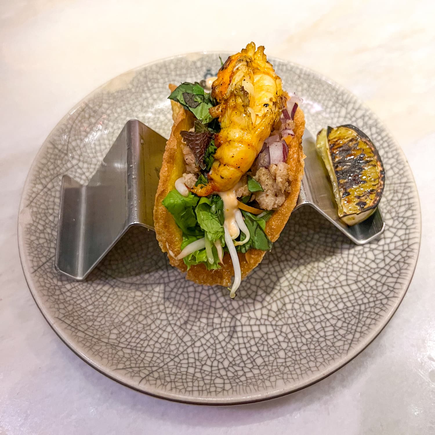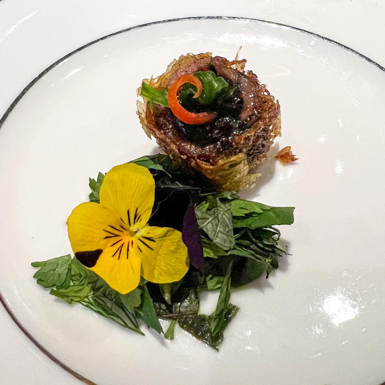 Món thứ hai của chúng tôi tại nhà hàng này là món nem của Việt Nam nhưng theo phong cách Pháp với nhân thịt heo, gan ngỗng và nấm truffle đen. Như đã thấy ngay từ đầu, đầu bếp không ngần ngại sử dụng những nguyên liệu xa xỉ để làm tăng hương vị cho các món ăn theo phong cách ẩm thực Việt Nam mới của mình.