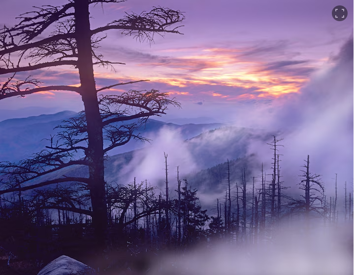 Khắp Great Smoky Mountains National Park, bạn sẽ thấy những dãy núi xếp lớp ngoạn mục, thường được bao phủ bởi lớp sương đặc trưng — hiệu ứng mơ màng từ rừng mưa ôn đới giải phóng hơi nước vô hại.